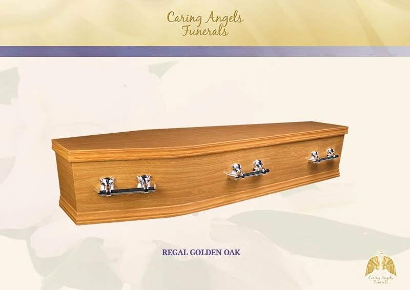 At Caring Angels Funerals, with permission from family members, we will also decorate the coffin with items relevant to the family and their recently departed loved one. For example, a recently departed lady loved ‘bling’, so we decorated around the edge of her coffin with gem stickers in her favourite colour.